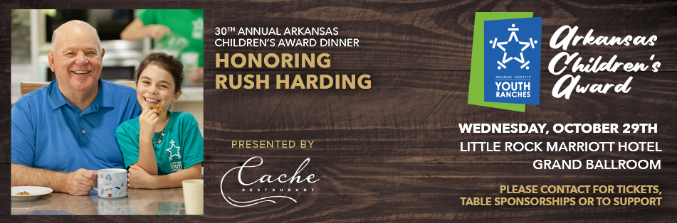 08/15/2025For 30 years, Arkansas Sheriffs’ Youth Ranches has recognized Arkansans who have made outstanding contributions to create better opportunities for Arkansas children. These Arkansans personify in word and deed the ideals of the Ranch, and hundreds gather each year to pay tribute to their dedication at the Arkansas Children’s Award Dinner. This year, we are excited to present the 30th annual Arkansas Children’s Award to Rush Harding, a generous advocate for building hopeful futures for Arkansas youth. Rush was raised in the Delta community of Clarendon, the son of a legendary high school coach and a beloved home economics teacher … Continue reading